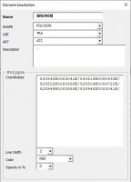 Bei einem Polyarc sind eine Centerkoordinate, ein Radius und der Begin, sowie Ending-Radial anzugeben. Danach folgen mindestens zwei Punkte / Koordinate Nach oben, ist der Anzahl der Koordinaten fast keine Grenze gesetzt.