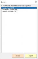 Habe Sie alle Elemente ihren Wünschen entsprechend bearbeitet, können Sie bei „Export Elements“ auswählen, in welches Zielsystem-Datenformat die ACO-Elemente konvertiert und exportiert werden sollen.