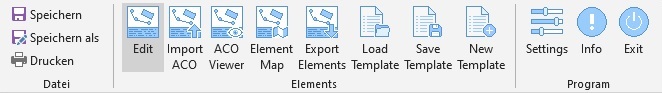 Mit dieser Schaltfläche könne Sie zur Ansicht des ACO Elemente wechseln.